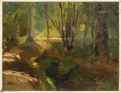 Kleine Waldstudie mit Staffage.