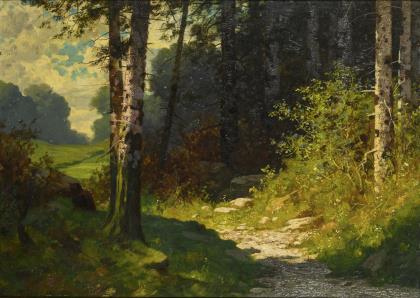RÜDISÜHLI, Eduard Paul (1875 Basel - 1938 Rorschacherberg). Waldrand im Sonnenschein.