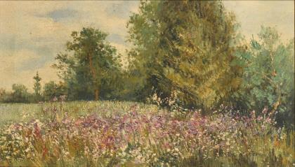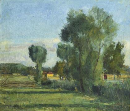 Undeutlich signiert: Sommerliche Landschaft
