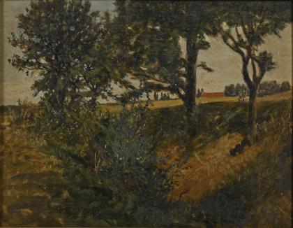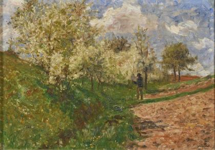 Rückseitig mit Motivangabe "Motiv bei Ehringsdorf westlich der Belvedere Allee (im Bilde der Maler Prof. Max Merker mit Palette dargestellt)"