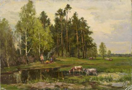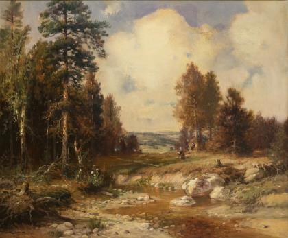 Russischer Maler: Landschaft mit Staffage
