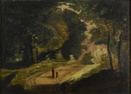 Schule von Barbizon: Waldlandschaft mit Staffage