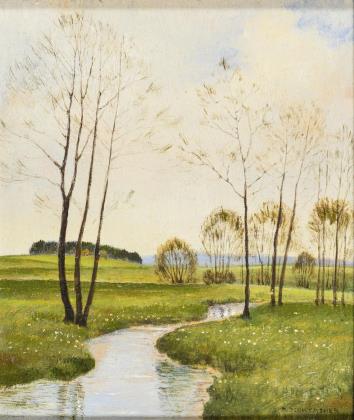 SCHWERDTNER, Paul (1911 Belgrad - 1990 Dessau). Bachlandschaft im Frühling.