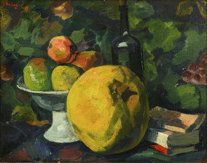 BRISOT, Gilbert. Stillleben mit Blumen und Obst.