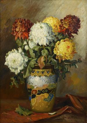 BARCANESCU, P.. Stillleben mit Chrysanthemen.