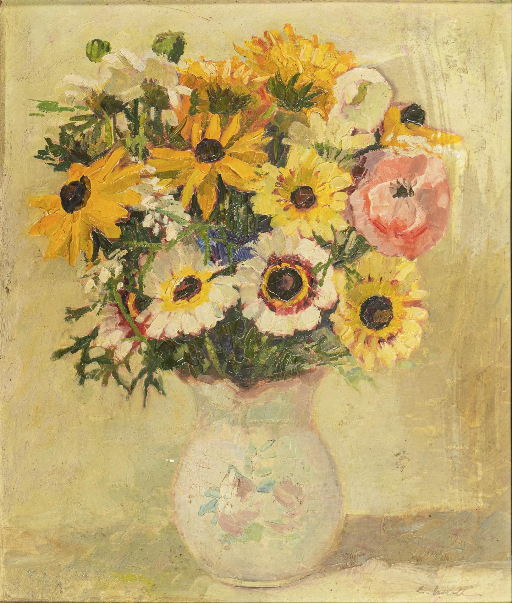 LÖBER, Frida (1910 Höhnstedt - 1989 Ahrenshoop). Blumenstillleben.