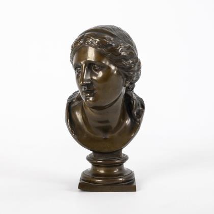 Aufgesockelte Büste einer Frauengestalt, möglicherweise Hygieia oder Venus; verkleinerte Ausführung durch Ferdinand Barbedienne