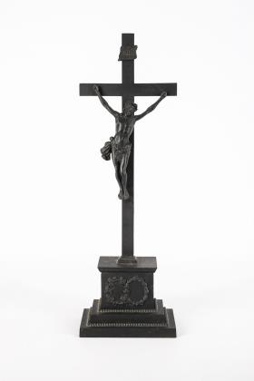 Christus am Kreuz auf profiliertem und ornamentiertem Postament