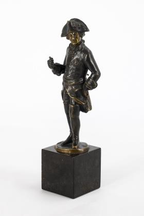 Friedrich II., König von Preußen in Uniform mit Dreispitzhut und unter den Arm geklemmten Gehstock