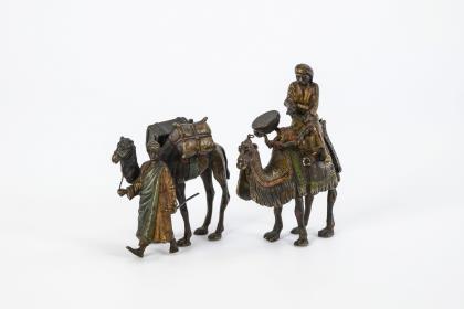 2 Wiener Bronzen: Araber mit Dromedaren.