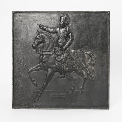 Auf dem Hengst reitender Kaiser der Franzosen in Uniform, der in gebieterischer Pose vorwärts weist