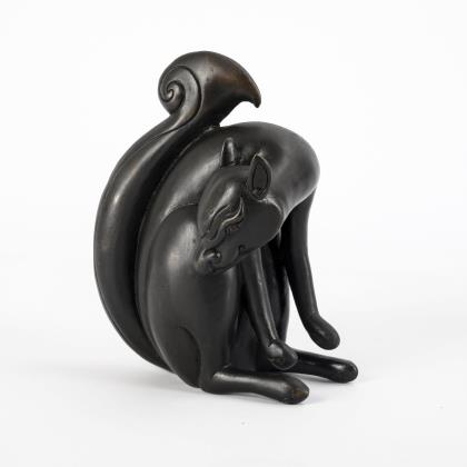 Eichhörnchen in sitzender Haltung mit asiatischen Gestaltungselementen