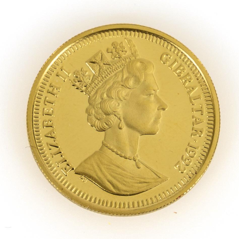 "Elisabeth II Gibraltar 1992". Revers: "Charter of the city of Gibraltar 1842 - 1992"