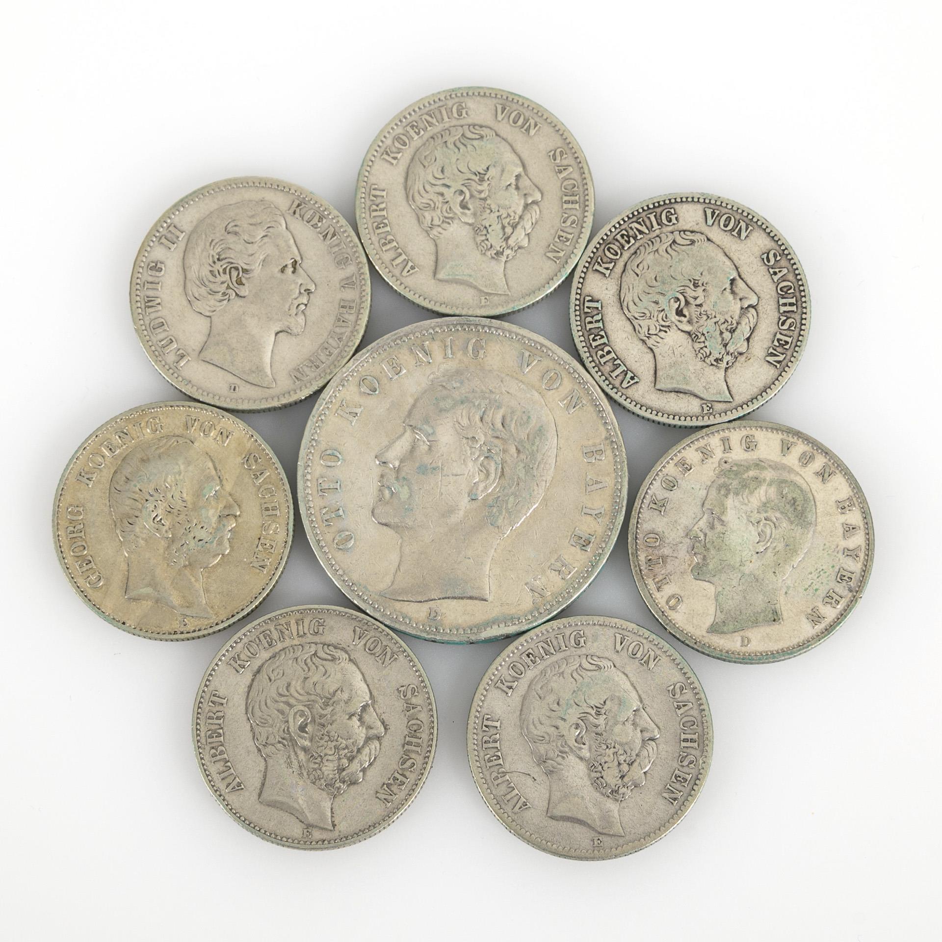 5 Mark 1907, "Otto Koenig von Bayern" / 2 Mark 1907, "Otto Koenig von Bayern". / 2 Mark 1876, "Ludwig II Koenig v. Bayern" / "Albert Koenig von Sachsen": 5x 2 Mark, 2x 1876, 1877, 1900, 1904