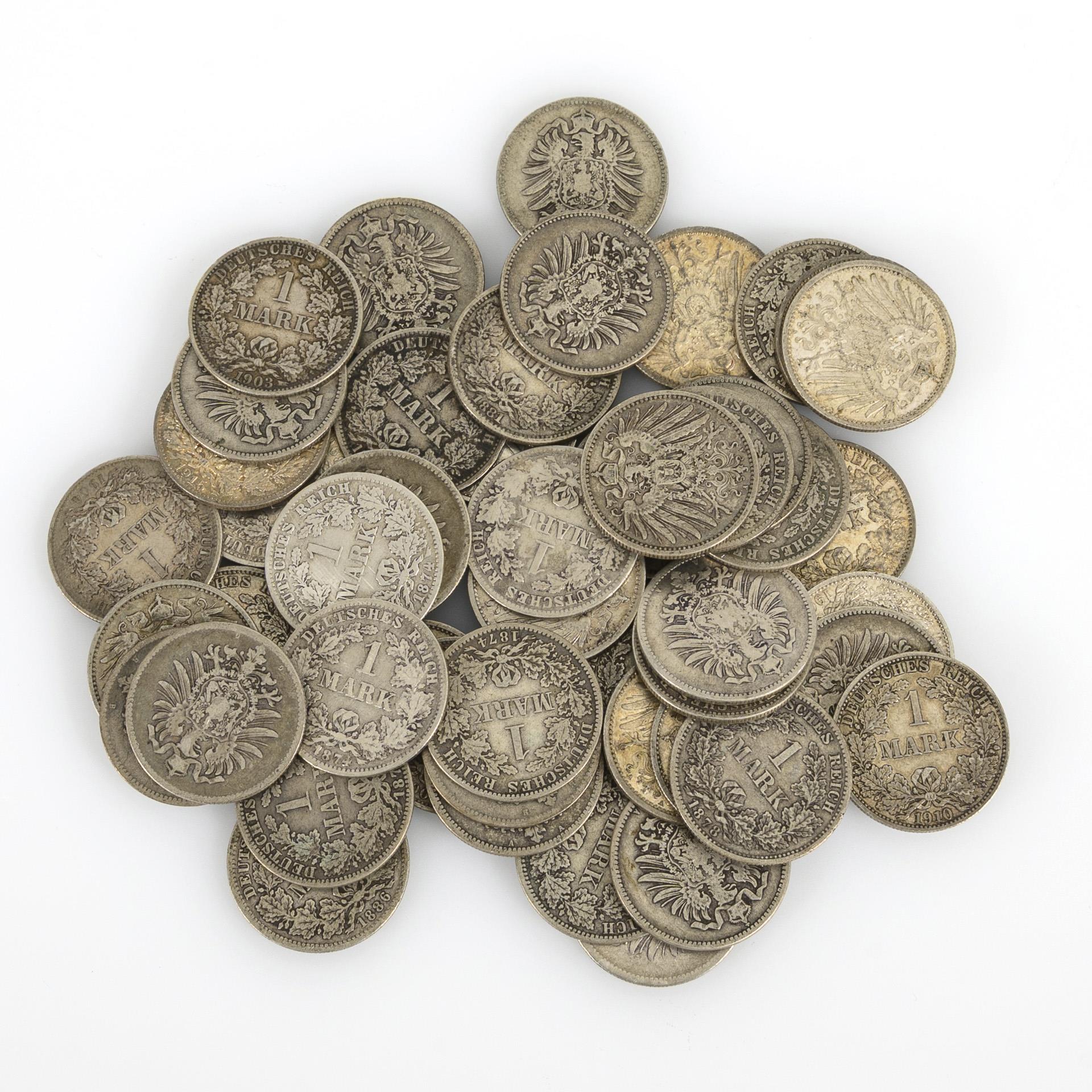 50x 1 Mark Münzen, Deutsches Reich.