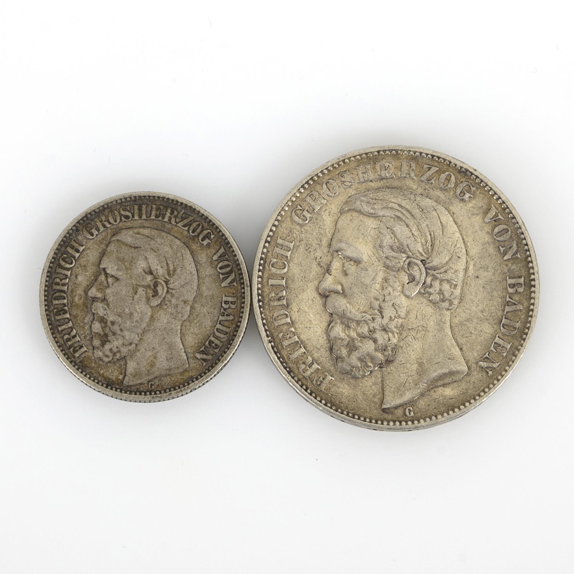 5 Mark "Friedrich Grosherzog von Baden", 1876. / 2 Mark desgleichen von 1877. Beide Münzstätte G
