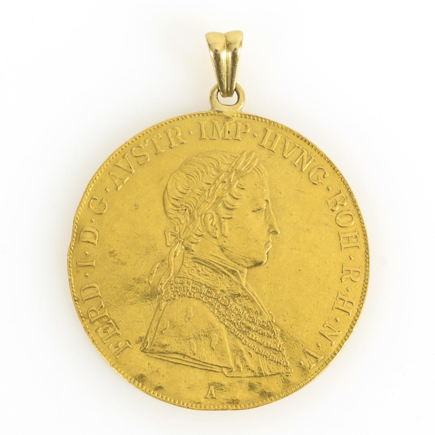 4 Ducaten, Österreich-Ungarn, Ferdinand I.. "Ferd I D G Austr Imp Hung Boh R H N V", "Rex Lomb Et Ven Dalm (4) Gal Lod Ill A A 1841". Öse und Schlaufe, Gold geprüft