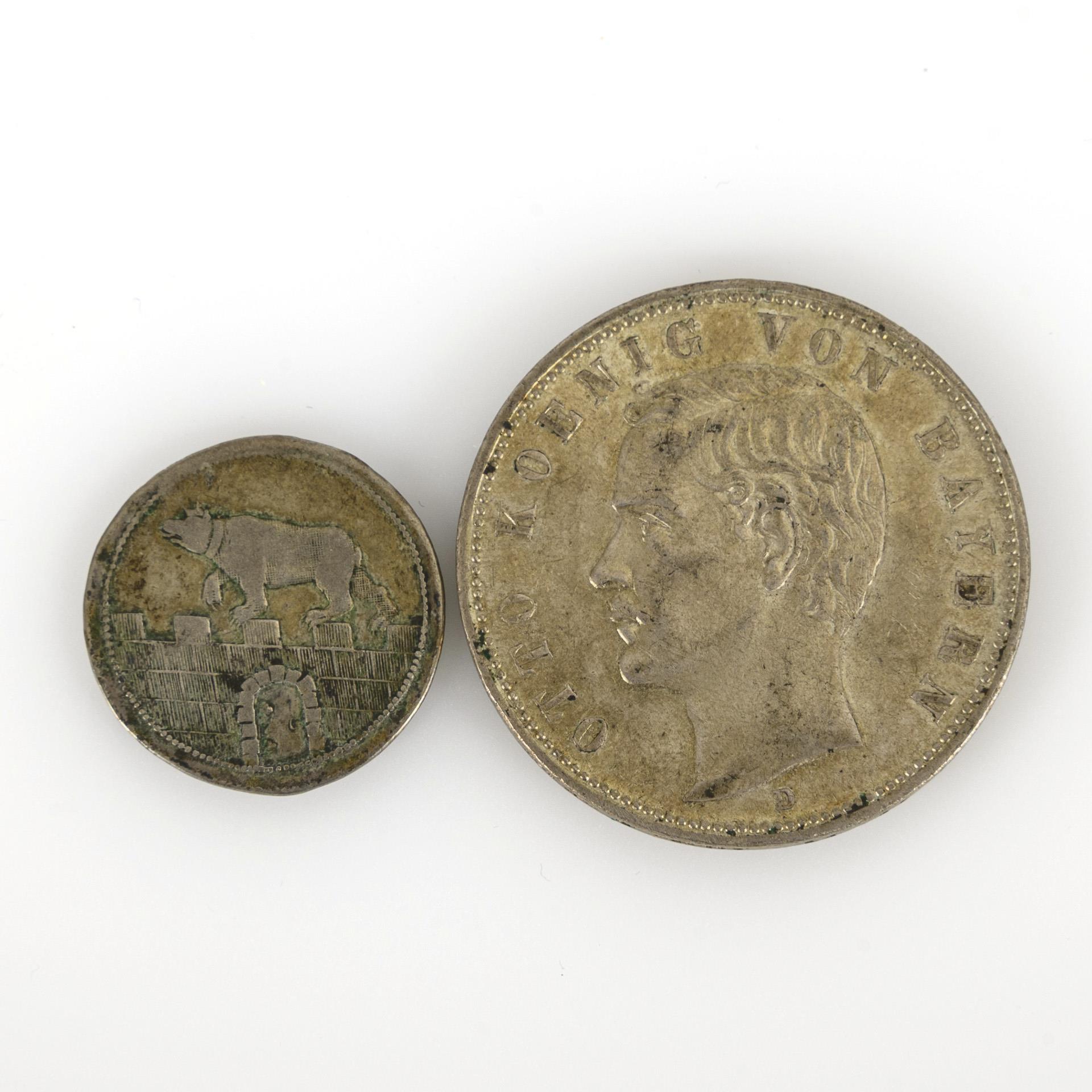 2 Münzen: 5 Mark 1913 Otto von Bayern / 1/6 Thaler Bernburg.