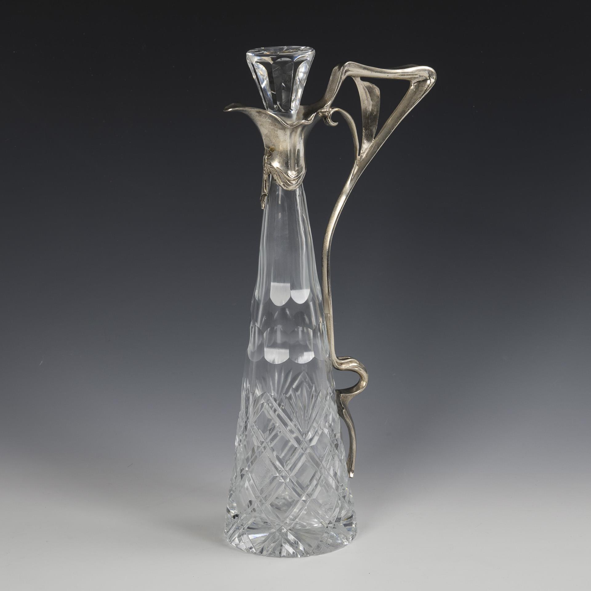 Jugendstil-Kristallkaraffe mit Metall-Applikation.