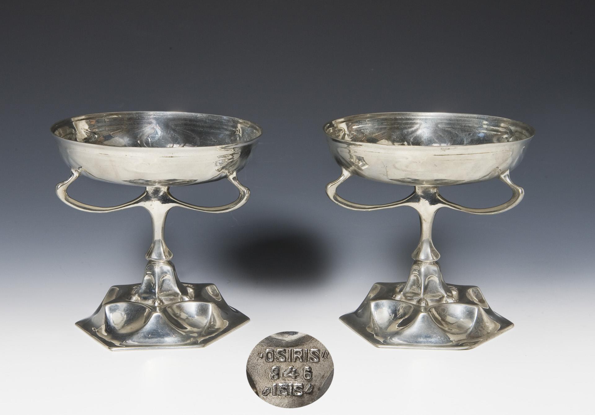 Paar Jugendstil-Fußschalen. Walter Scherf, Metallwarenfabrik für Kleinkunst, Nürnberg.
