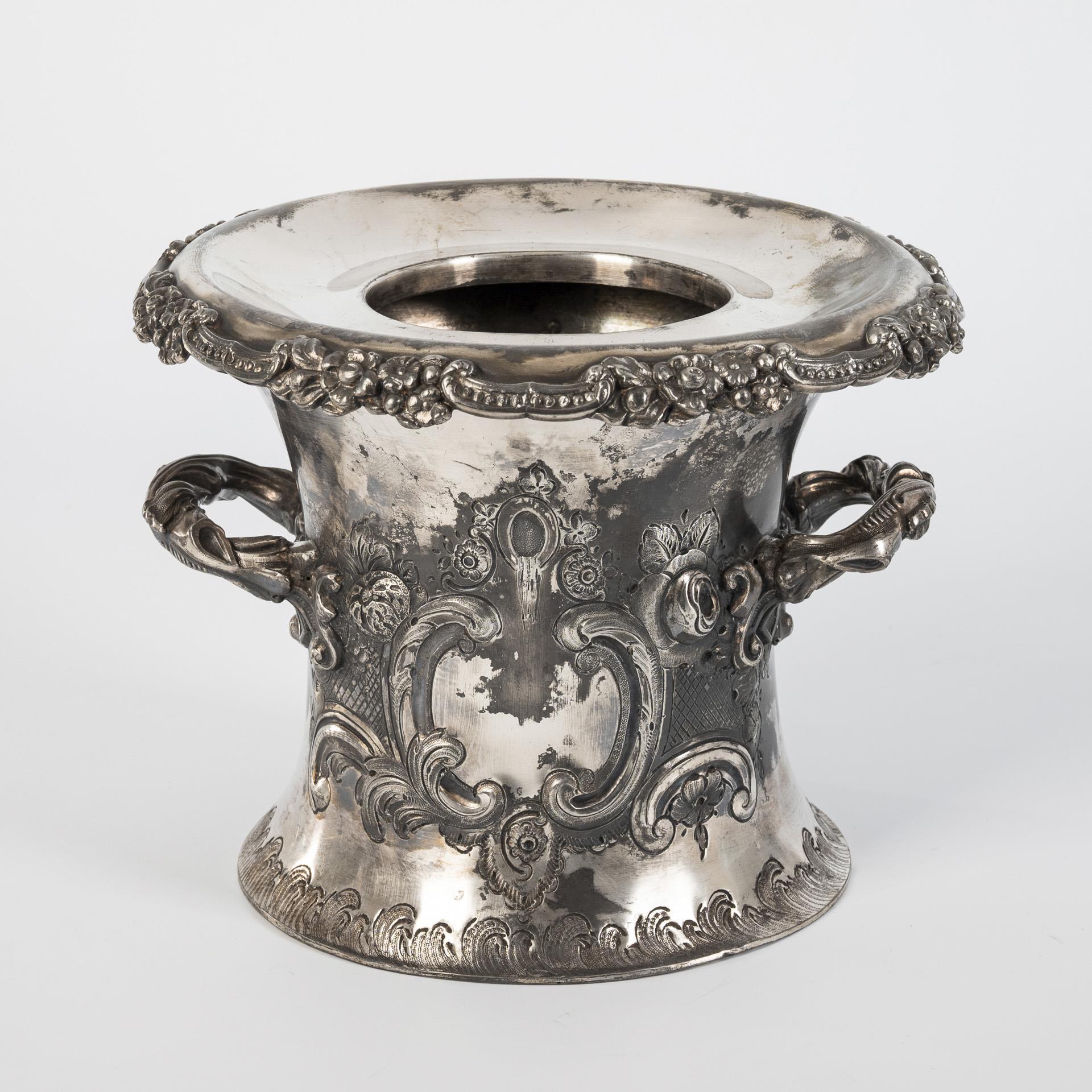 Sektkühler mit zwei Henkeln und floralem Dekor rund um zwei leere Kartuschen