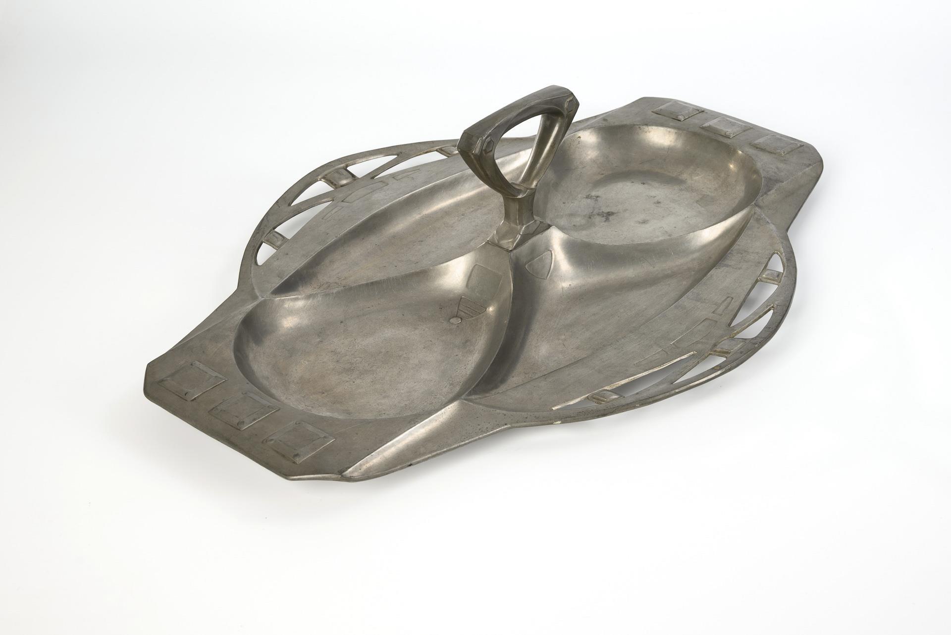 Zinnschale mit Glaseinsatz, Entwurf Albin Müller.
