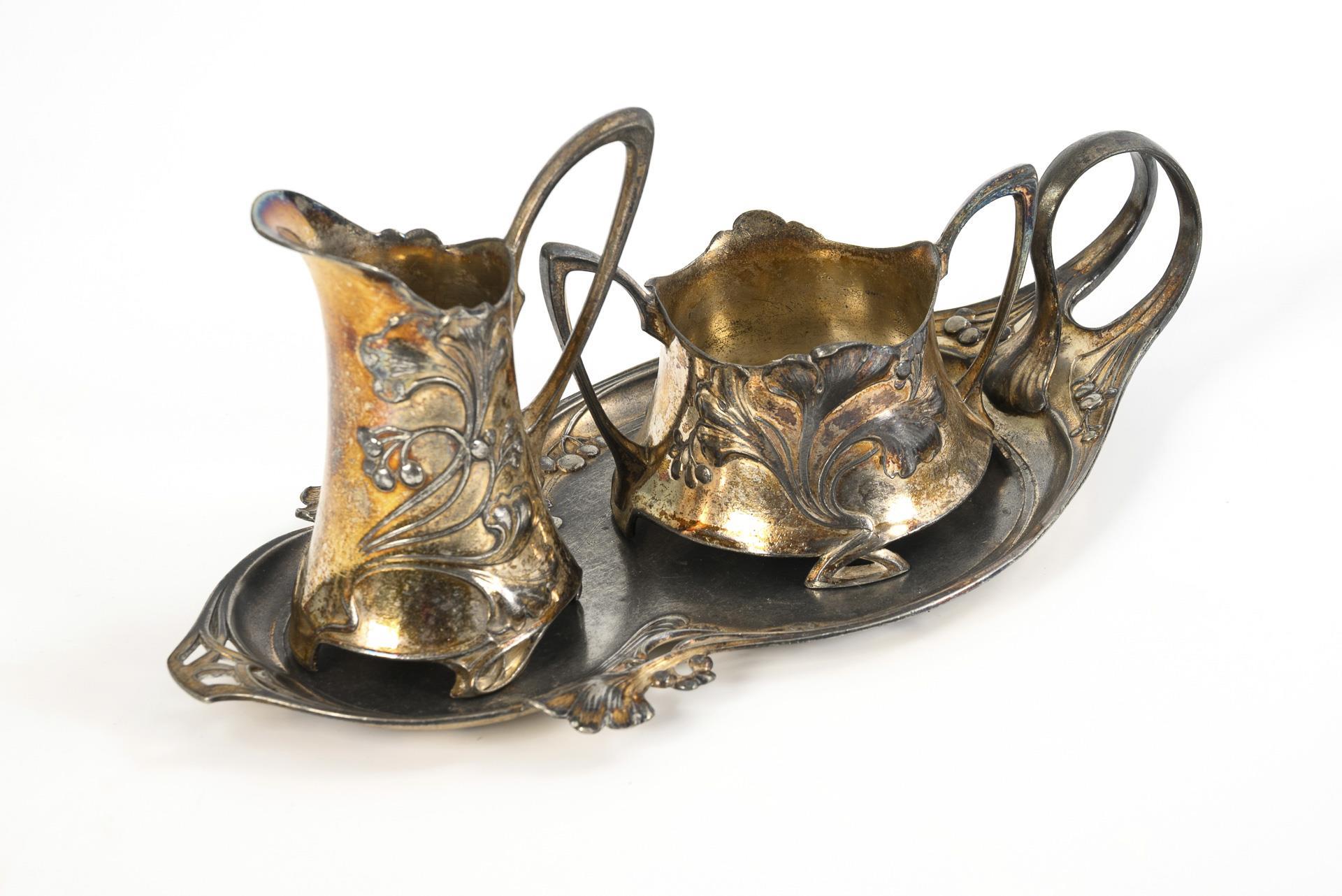 Jugendstil Zucker-Sahne-Set auf Tablett. WMF.