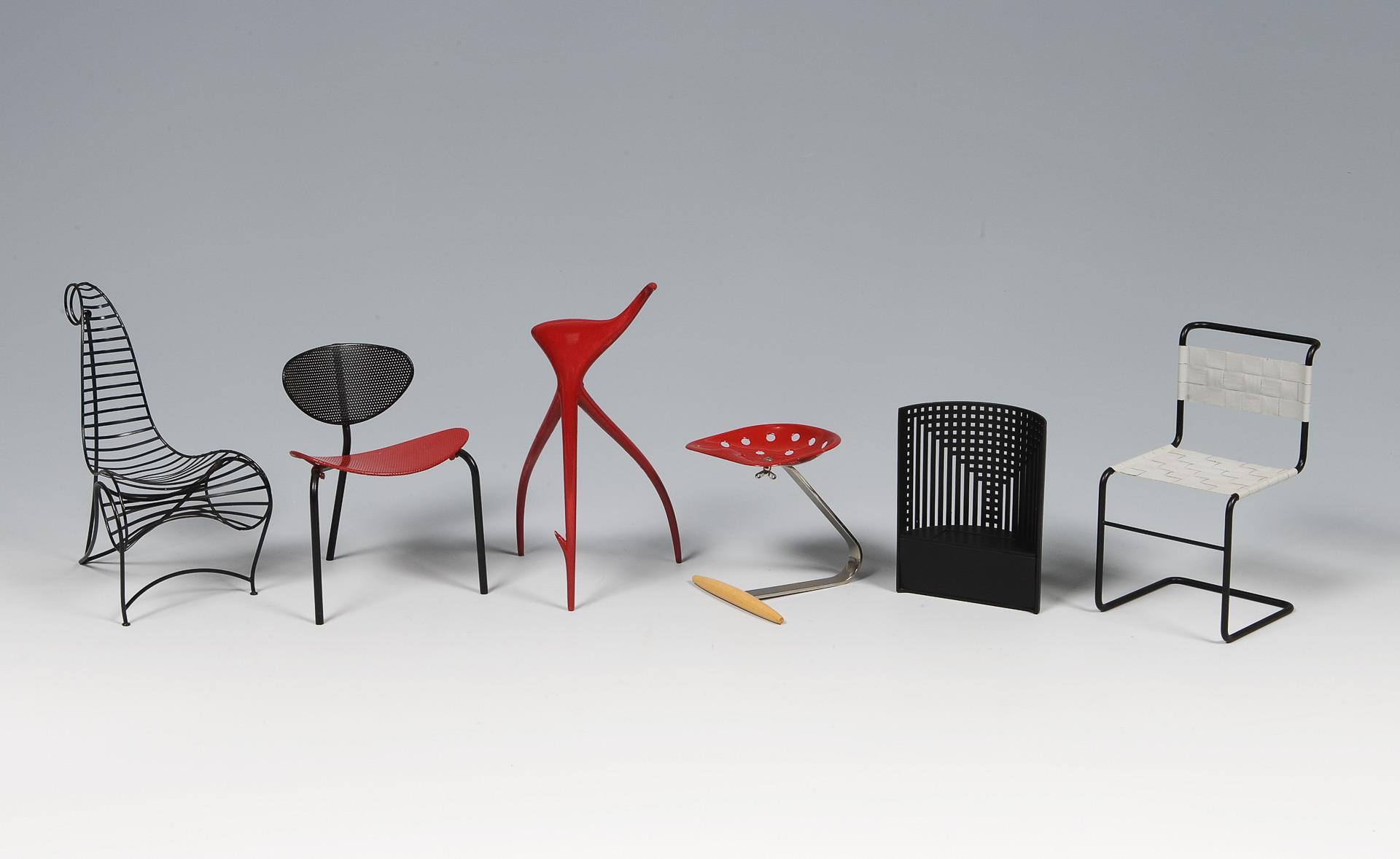 6 Miniatur-Design-Stühle.