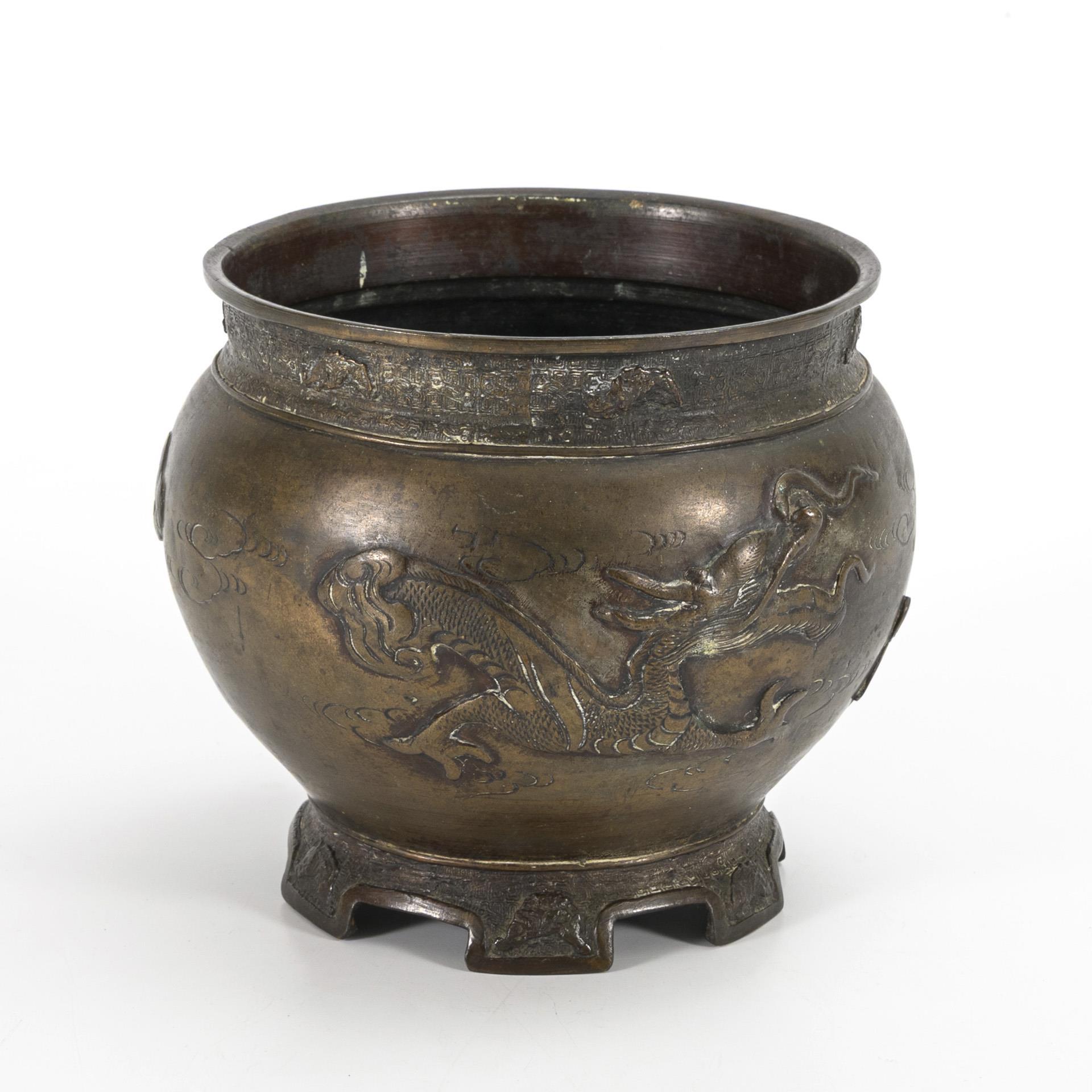 Bronzeübertopf mit Drachenmotiv.