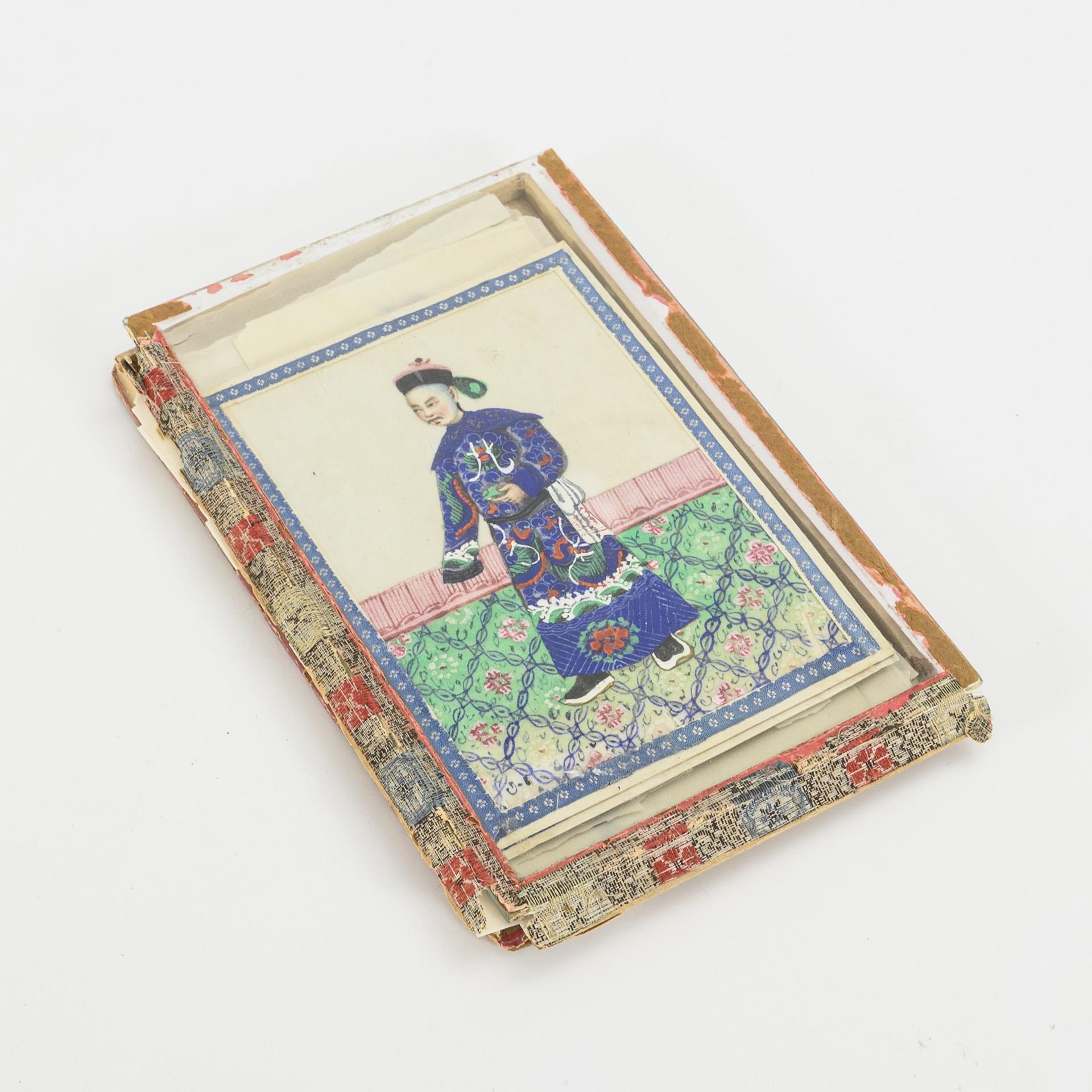 16 Blätter mit Abbildungen von Beamten, Gauklern und Standespersonen. Zwei Blätter mit Stoffrand eingefasst, die anderen Blätter unterschiedlich stark eingerissen, davon sind bei sechs Bildern auch die Darstellungen betroffen. In alter Schatulle mit Glasplatte