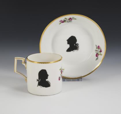 Tasse mit Silhouettenmalerei dreier preußischer Könige. KPM Berlin.