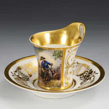 Tasse mit Dragonermotiv. KPM Berlin.