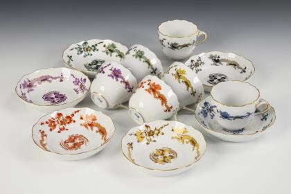 8 Porzellane mit Weinlaubdekor. Meissen.
