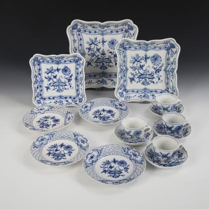 15 Zwiebelmuster-Porzellane. Meissen.