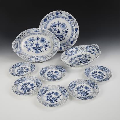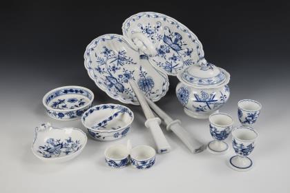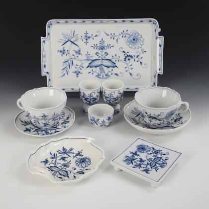 11 Zwiebelmuster-Porzellane. Meissen.