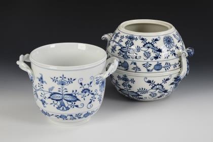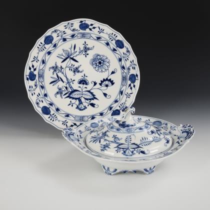 Zwiebelmuster-Tortenplatte und -Terrine. Meissen.