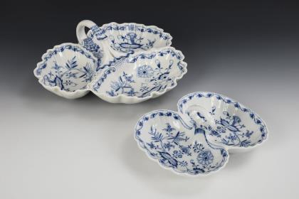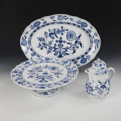 Zwiebelmuster-Schale, -Cabaret und -Butterdose. Meissen.
