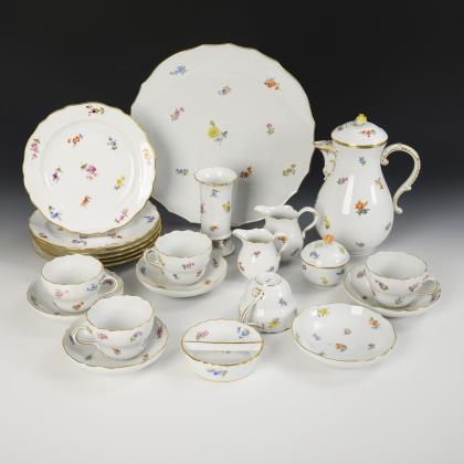 Speiseservice mit Streublümchenmalerei. Meissen.