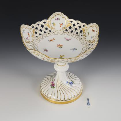 Durchbruchschale auf geschweift godroniertem Schaft und Fuß
