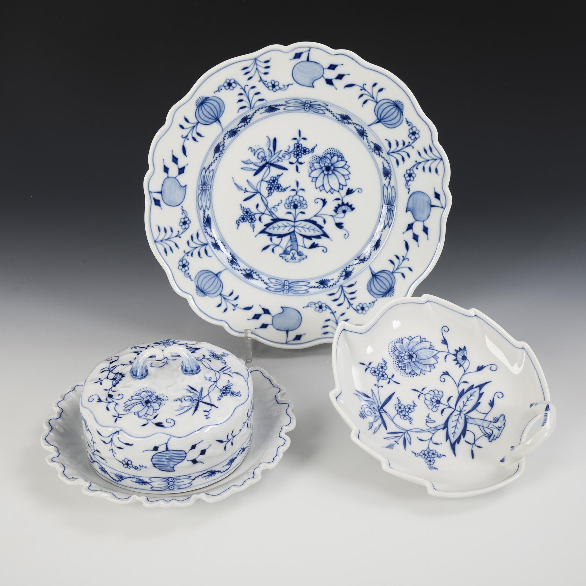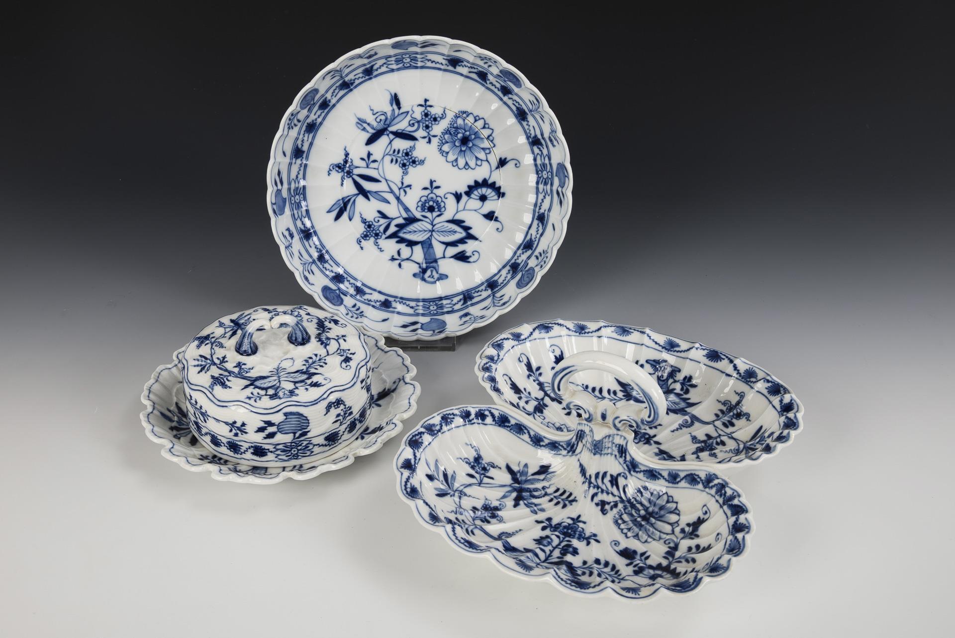 Zwiebelmuster-Schale, -Cabaret und -Butterdose. Meissen.