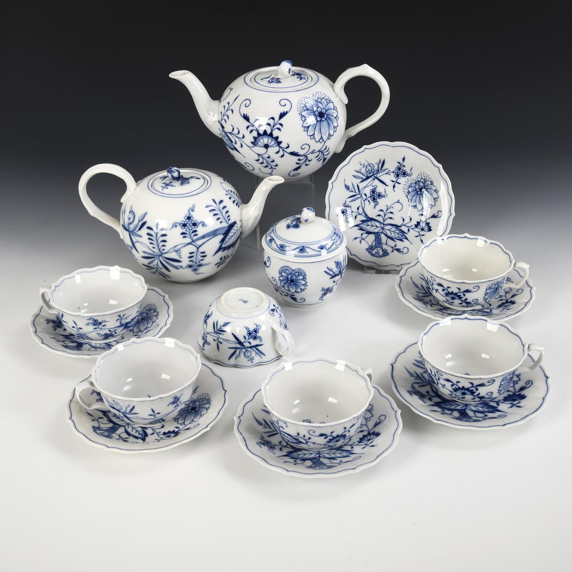 15 Teile eines Zwiebelmuster-Teeservice. Meissen.
