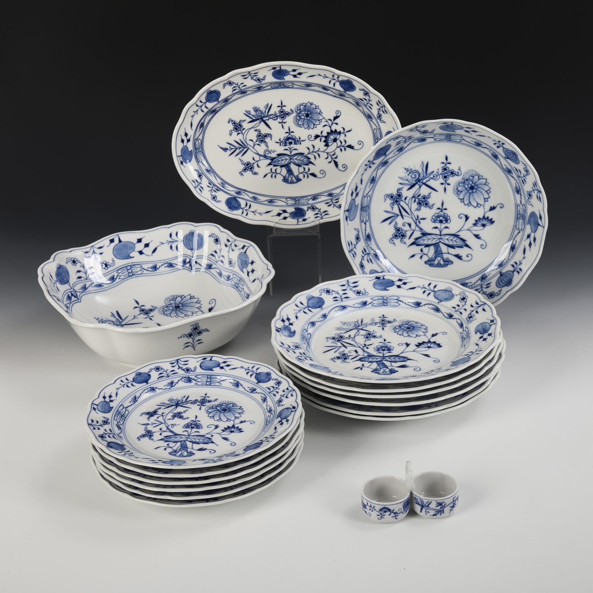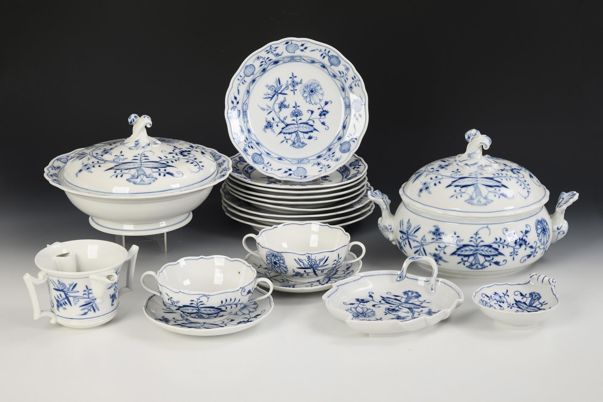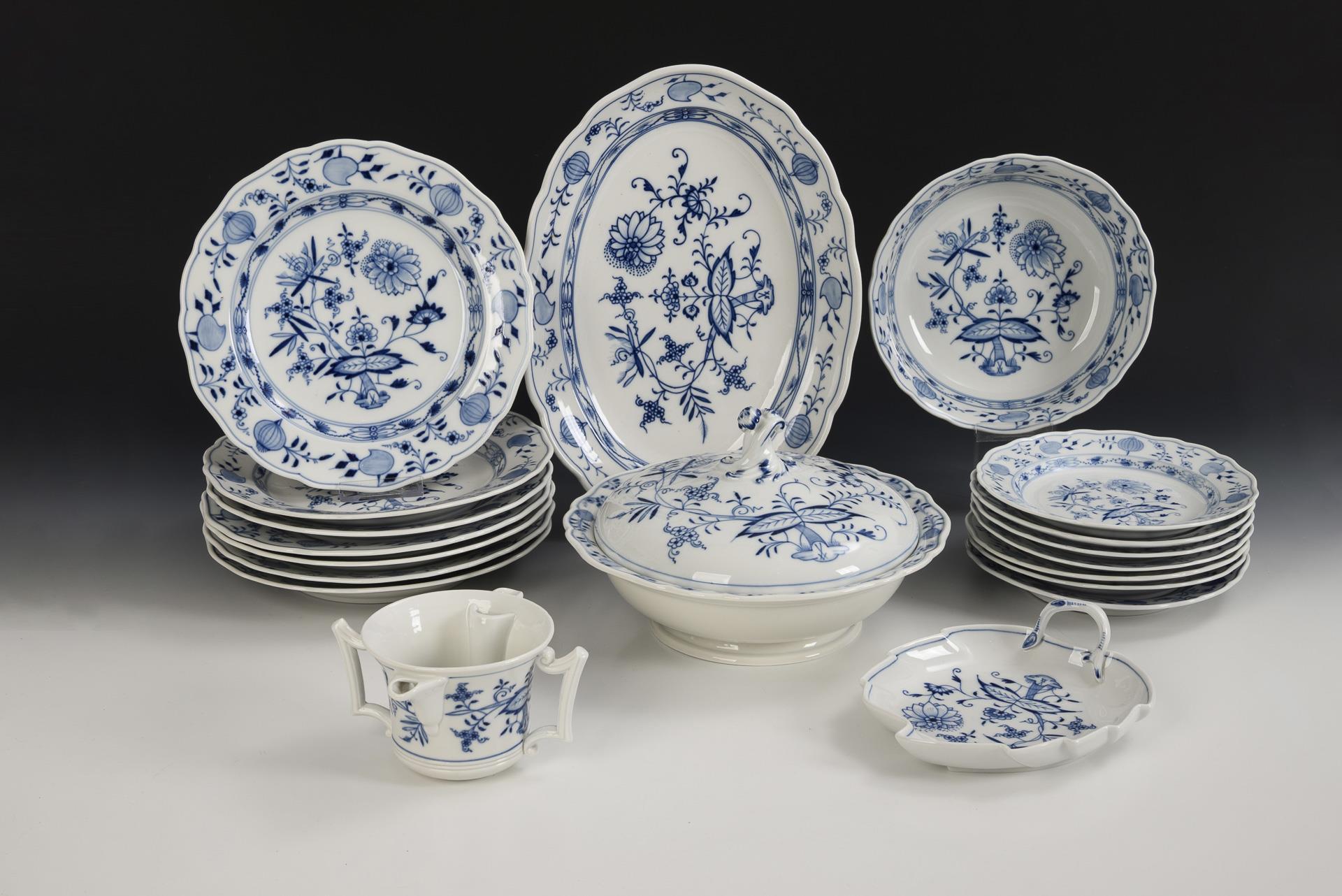 16 Teile eines Zwiebelmuster-Speiseservice. Meissen.