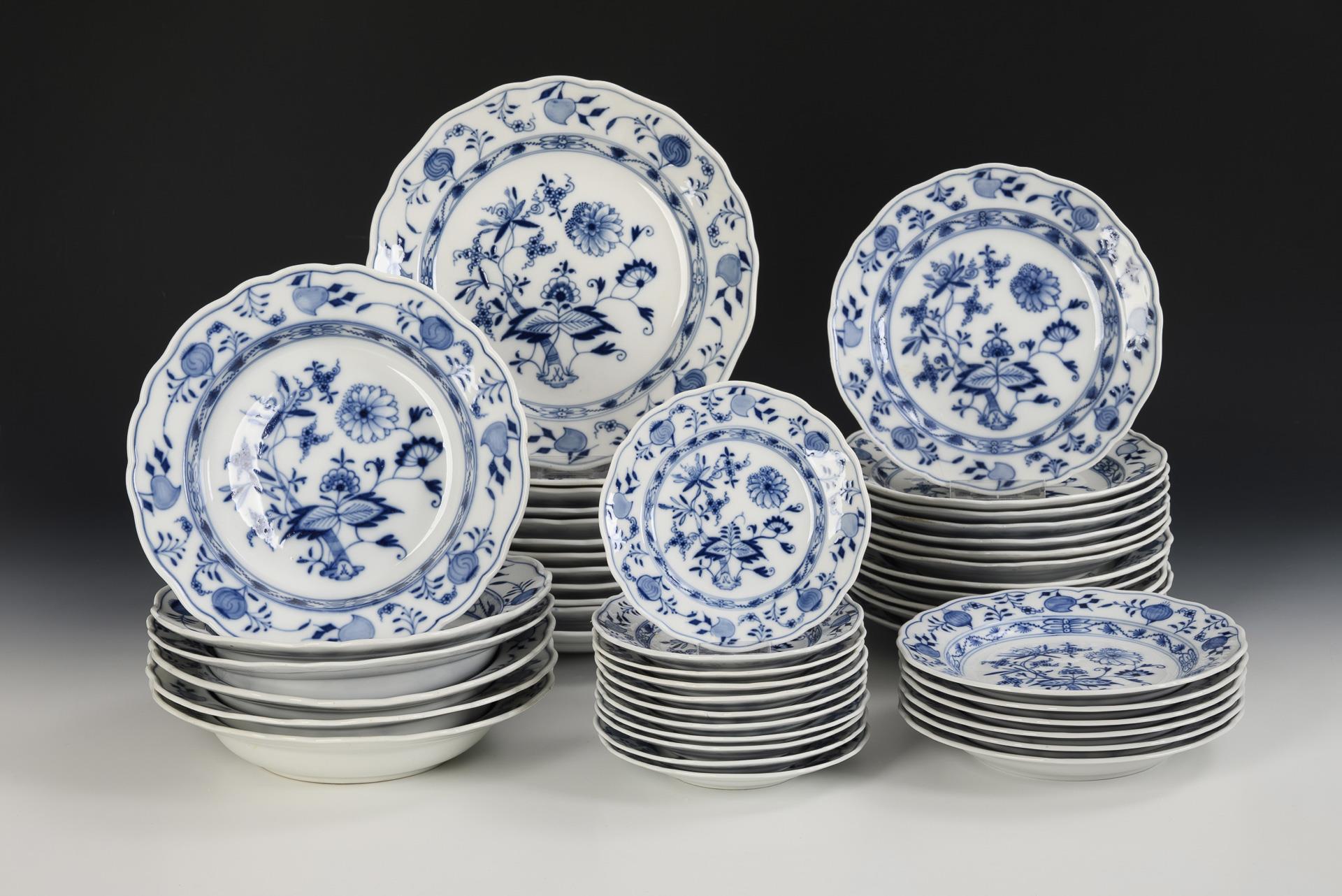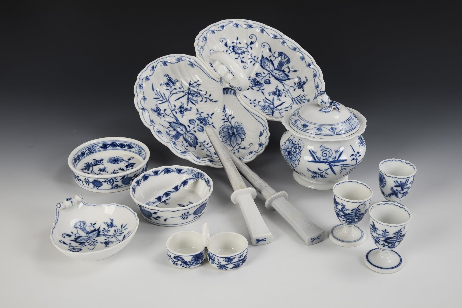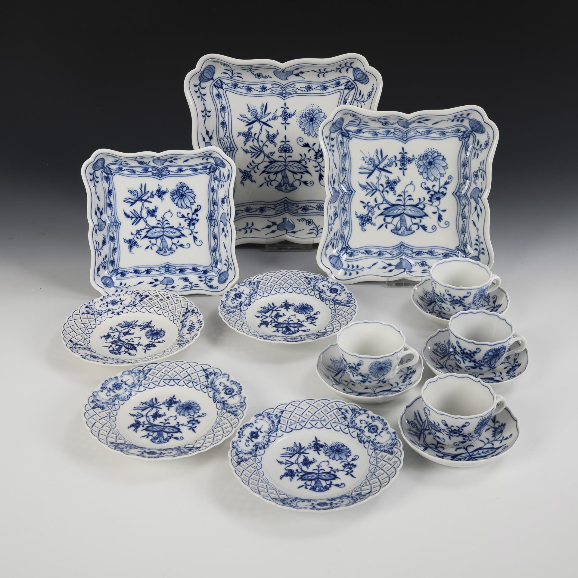 16 Teile eines Zwiebelmuster-Speiseservice. Meissen.