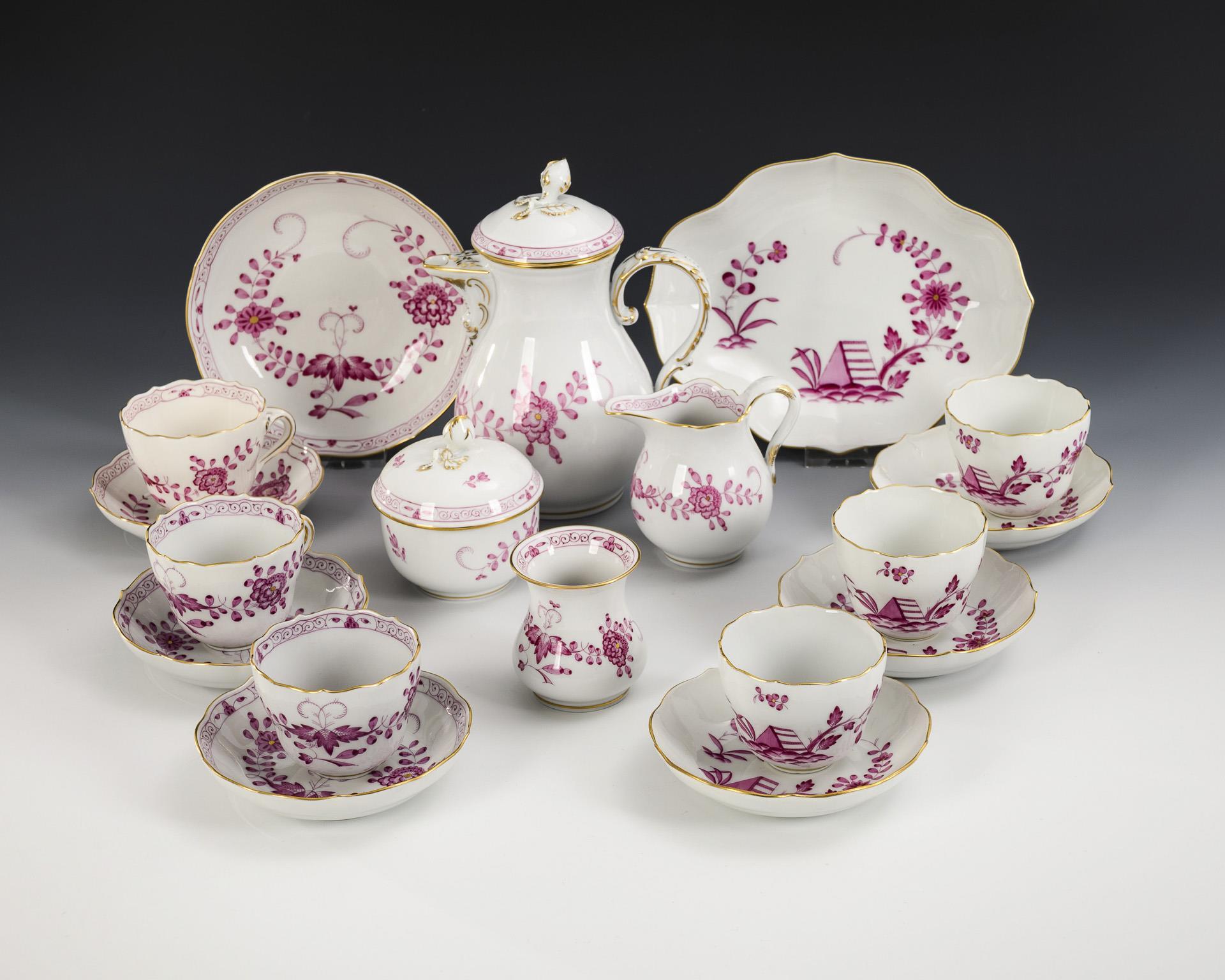 18 Teile eines Mokkaservice "Indisch Purpur". Meissen.