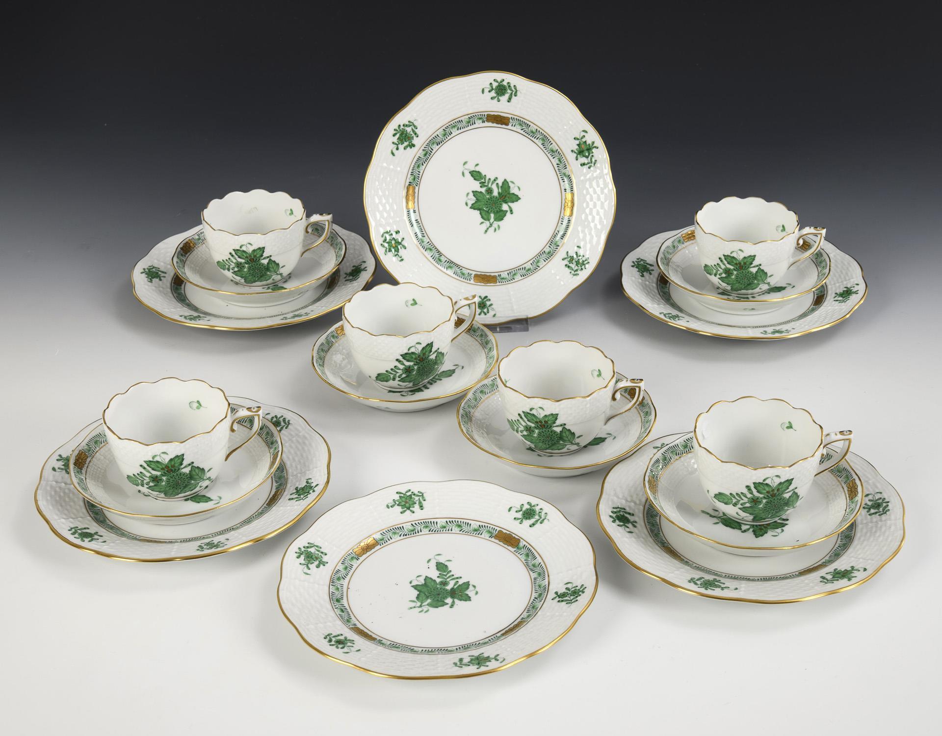 6 Mokkagedecke "Apponyi grün". Herend.