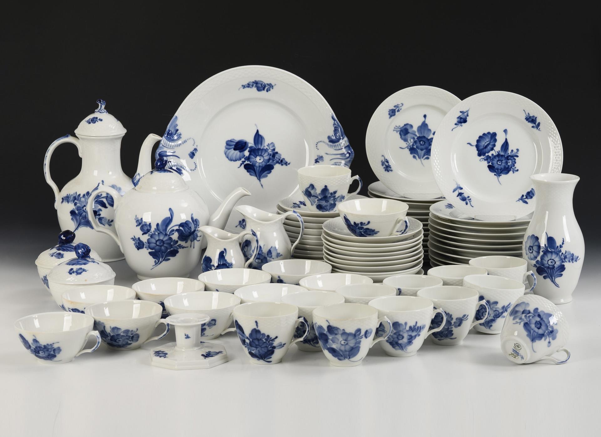 63 Teile eines Kaffee-, Tee- und Mokkaservice "Blaue Blume". Royal Copenhagen.