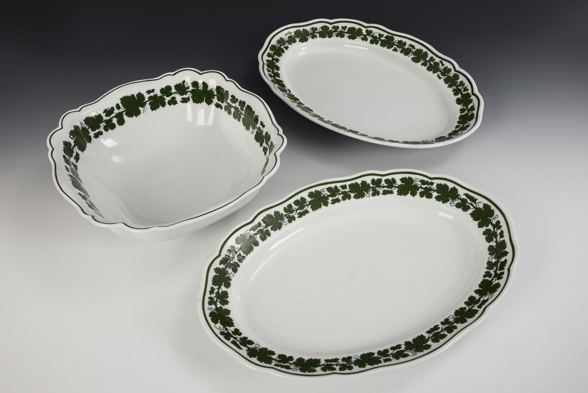 2 Platten und 1 Quadratschüssel mit Weinlaubdekor. Meissen.