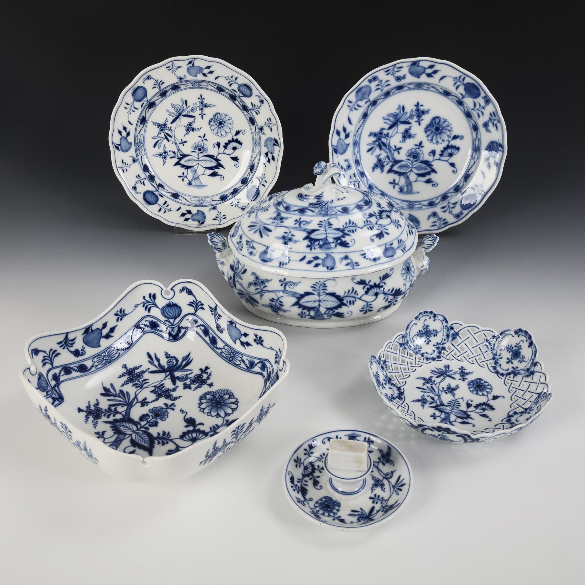 15 Zwiebelmuster-Porzellane. Meissen.