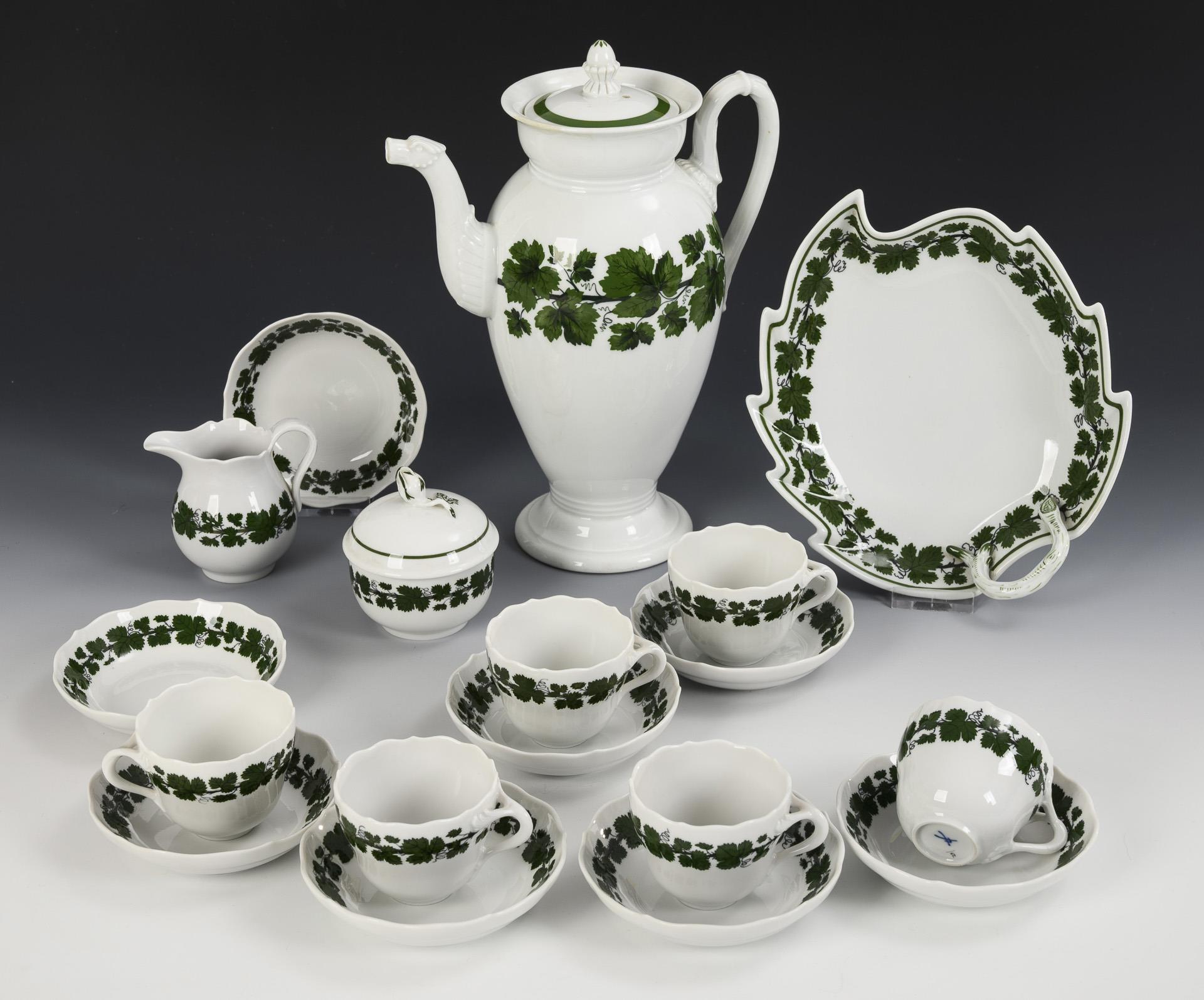 40 Teile eines Kaffeeservice mit Weinlaubdekor. Meissen.