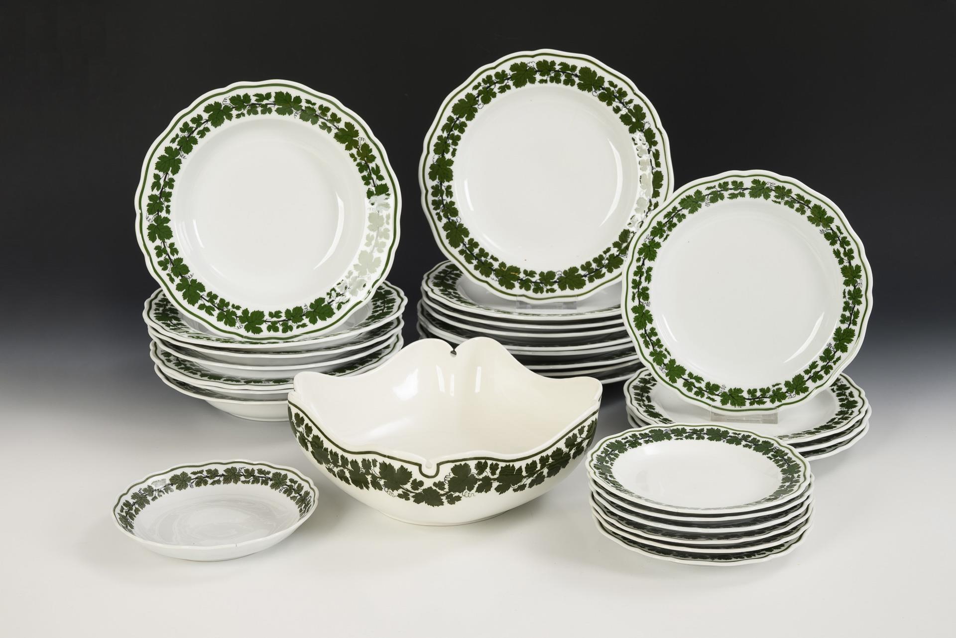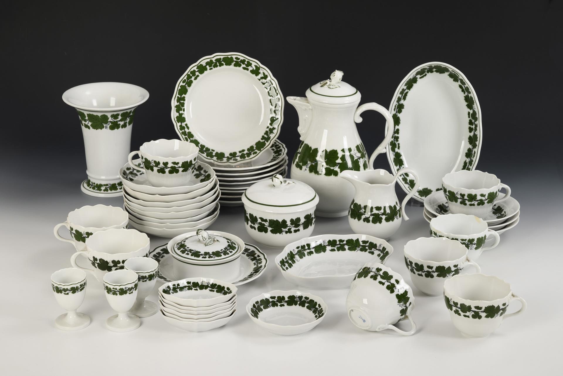 37 Teile eines Speiseservice mit Weinlaubdekor. Meissen.